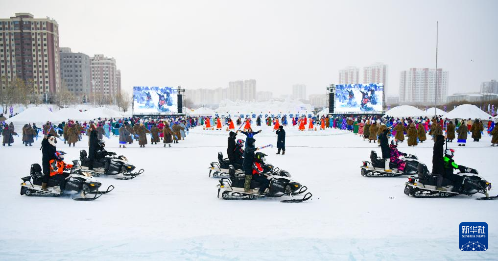 12月20日,参加开幕式彩排的马队入场。 12月20日,第二十一届内蒙古自治区冰雪那达慕开幕式进行了紧张的带妆彩排,演员们冒着严寒、认真演练。开幕式表演极具民族特色,现场观众提前目睹了精彩盛况。第二十一届内蒙古自治区冰雪那达慕将与21日在呼伦贝尔市隆重启幕。(康文魁 摄影报道)