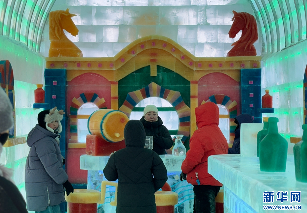 12月20日,呼伦贝尔绒绒雪世界正式开园迎客,市民、游客在冰屋参观。新华网 李倩摄