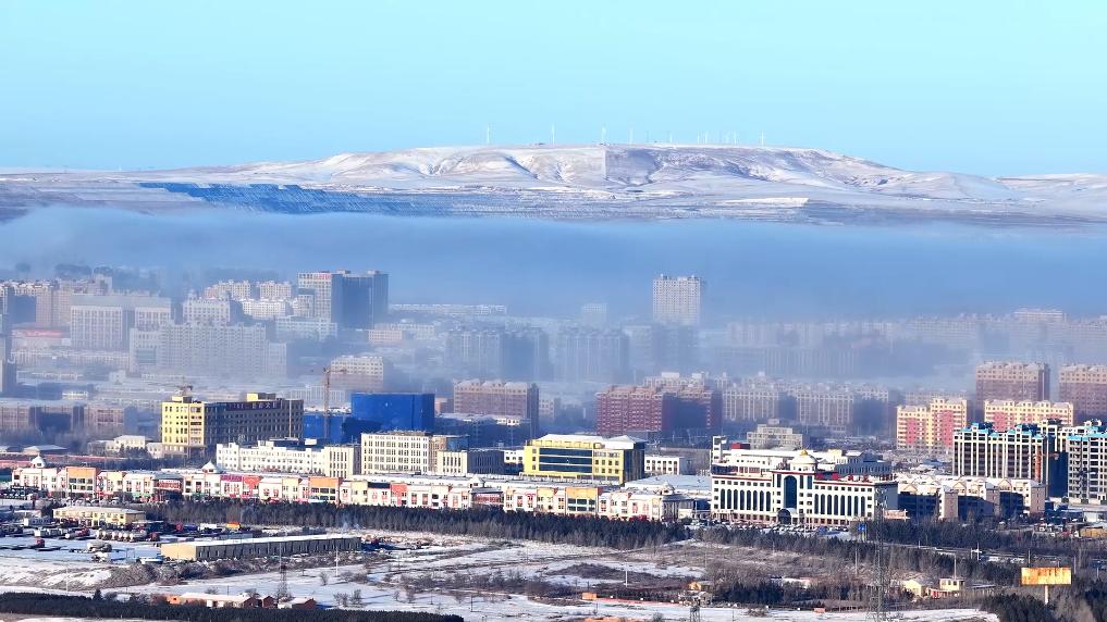 这一大气光学奇景中,雪后的草原明珠更显静谧。街巷炊烟袅袅,行人步履从容,冬日的清冽与生活的暖意相融。在极寒与暖阳的碰撞中,草原明珠将自然奇观与人间烟火完美契合,勾勒出北疆草原城市静谧美好的冬日画卷。