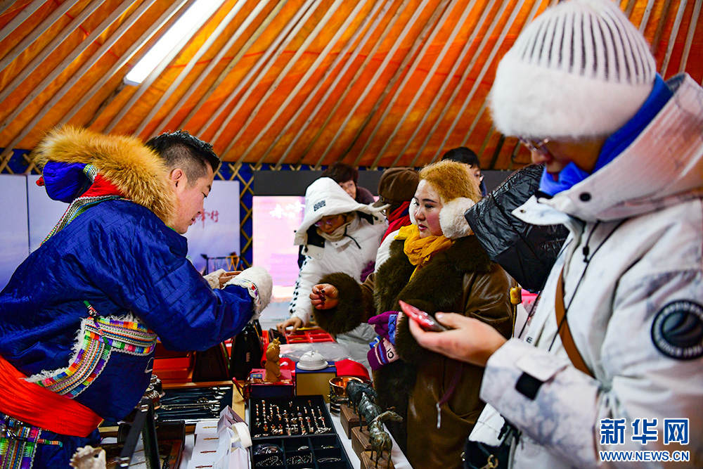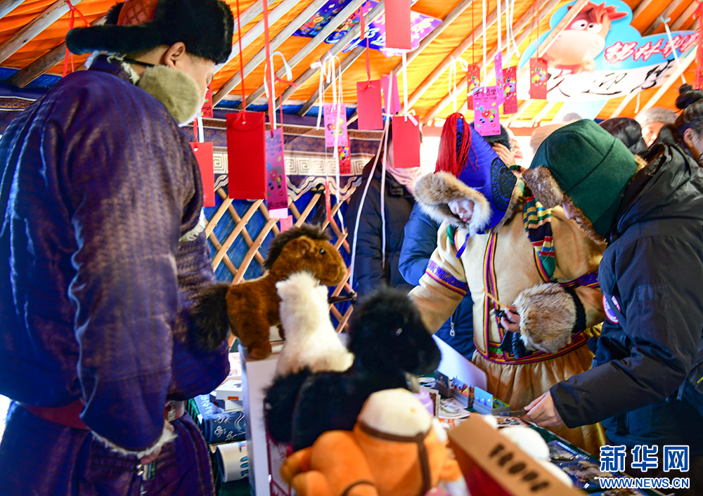 扎赉诺尔区——展销以猛犸象、拓跋鲜卑文化为主题的20余种文创产品,以及达斡尔民族服饰非遗和“湖船”牌鱼罐头等特色食品,提供热饮与暖贴。(毛丫)