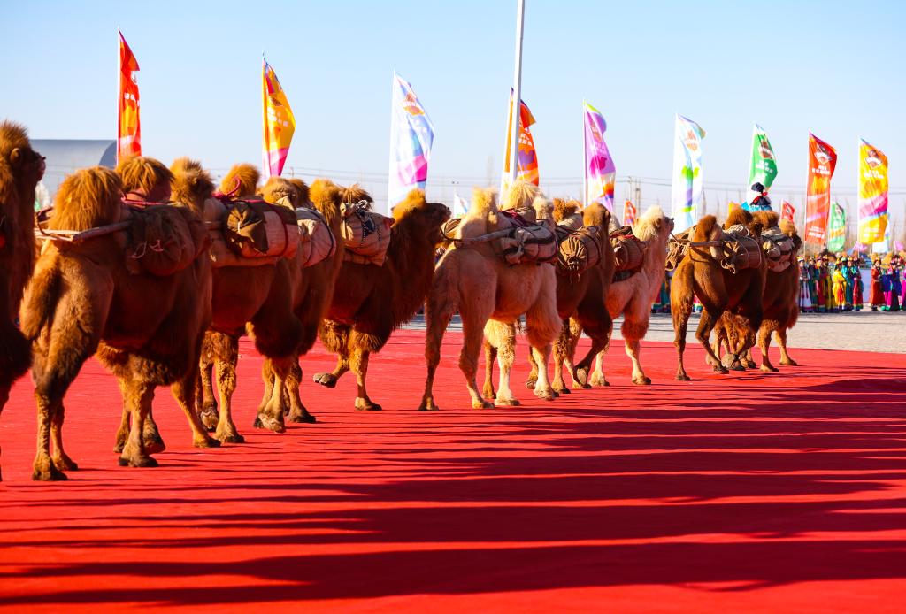 12月27日,参赛驼队在开幕式上入场。(康文魁 摄)