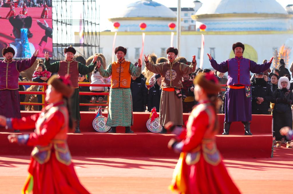 这是12月27日拍摄的阿拉善骆驼超级联赛开幕式现场。