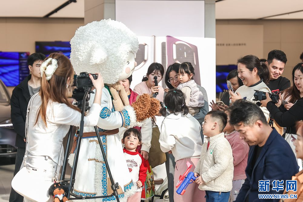 12月28日,在“我和草原有个‘粤’定”——呼伦贝尔大湾区推介会上,呼伦贝尔文旅小明星——“呼伦小羊”吸引广州市民、游客围观。新华网发