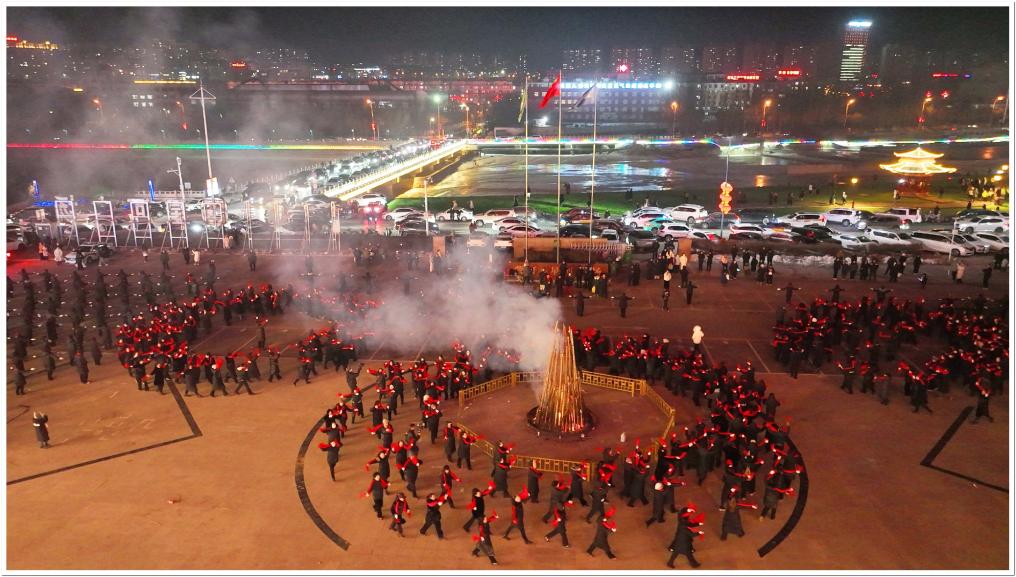 2025年12月31日,演员在美稷·长河里夜未央不夜城表演实景剧《印象·准格尔》。(康文魁 摄)