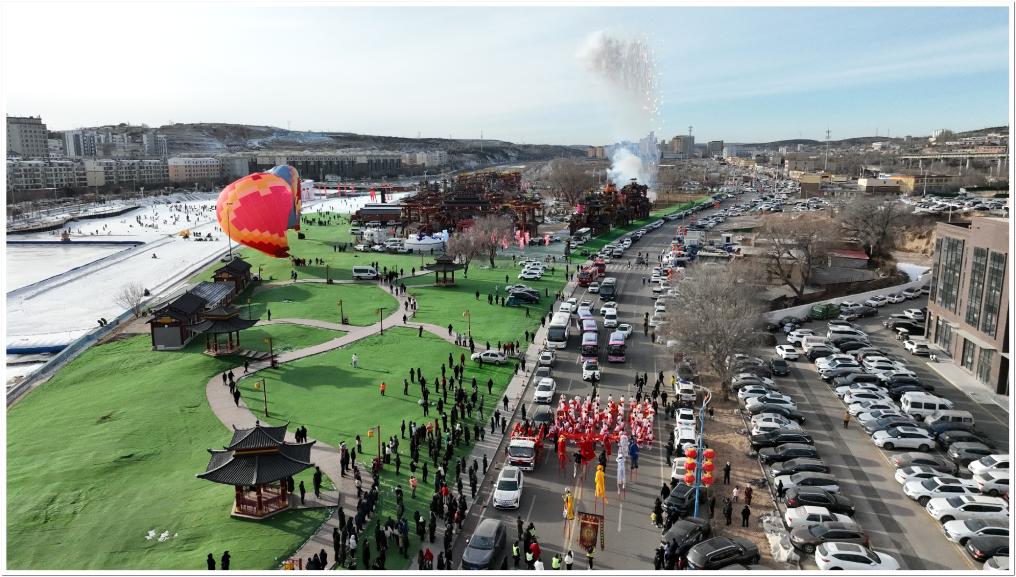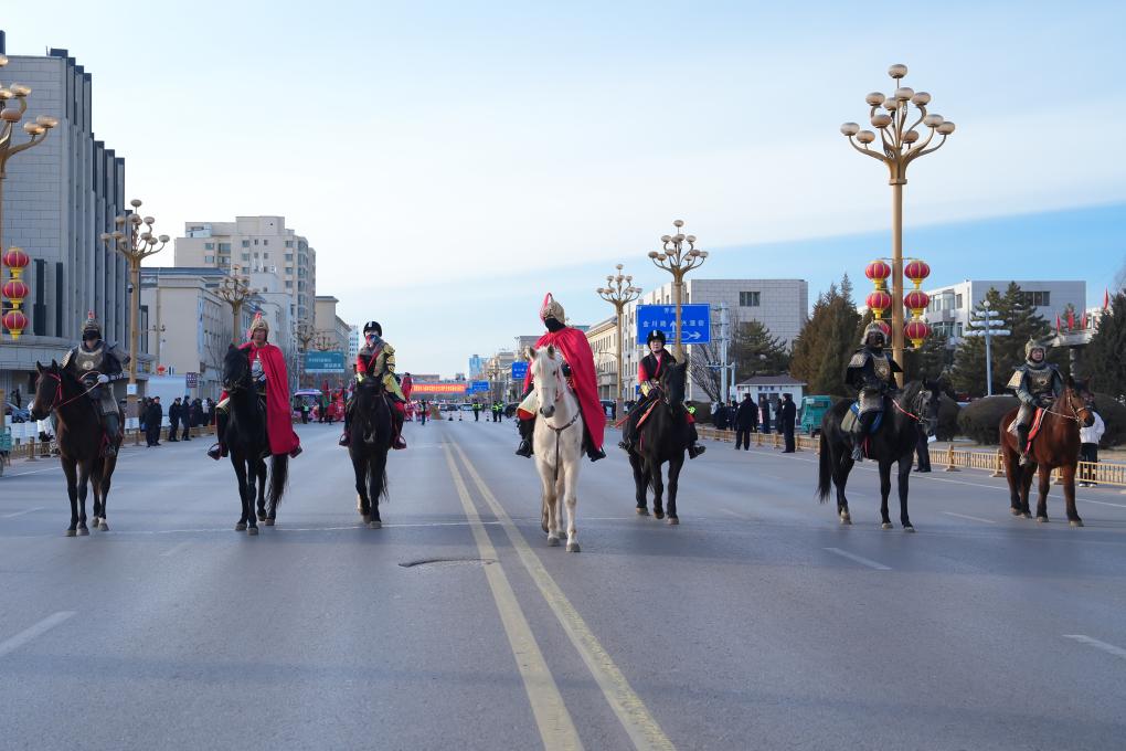 2025年12月31日,巡游队伍在准格尔广场行进。(曹文进_摄)