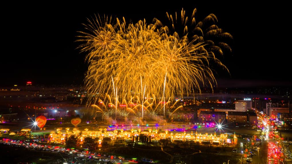 2025年12月31日拍摄的无人机与烟花秀表演(无人机照片)。(张健_摄)