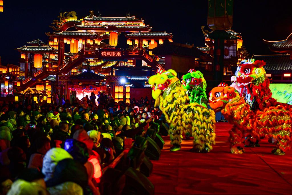 2025年12月31日,演员在美稷·长河里夜未央不夜城表演《祥狮献瑞》。
