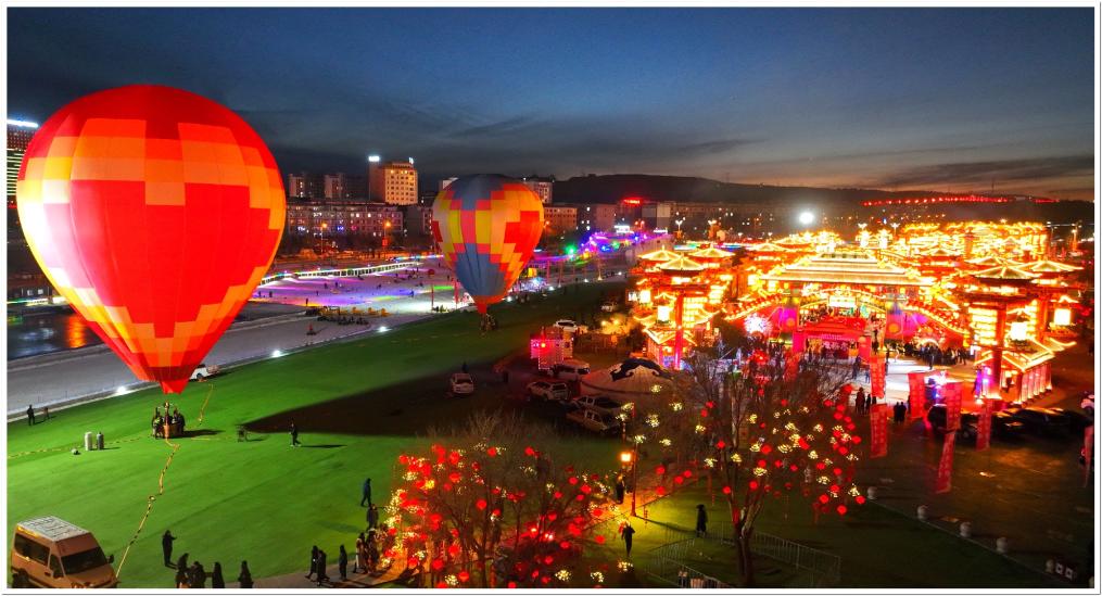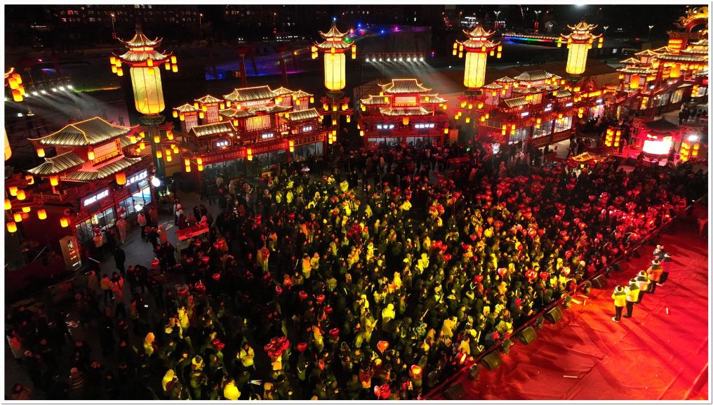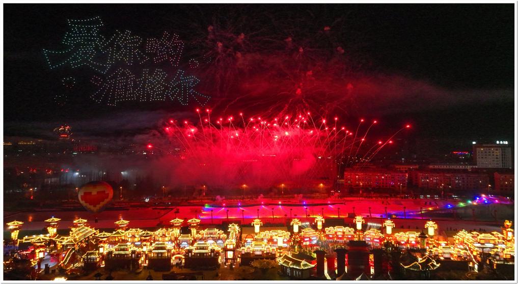 2025年12月31日拍摄的准格尔旗冰雪跨年夜活动现场(无人机照片)。 (李峰 摄)