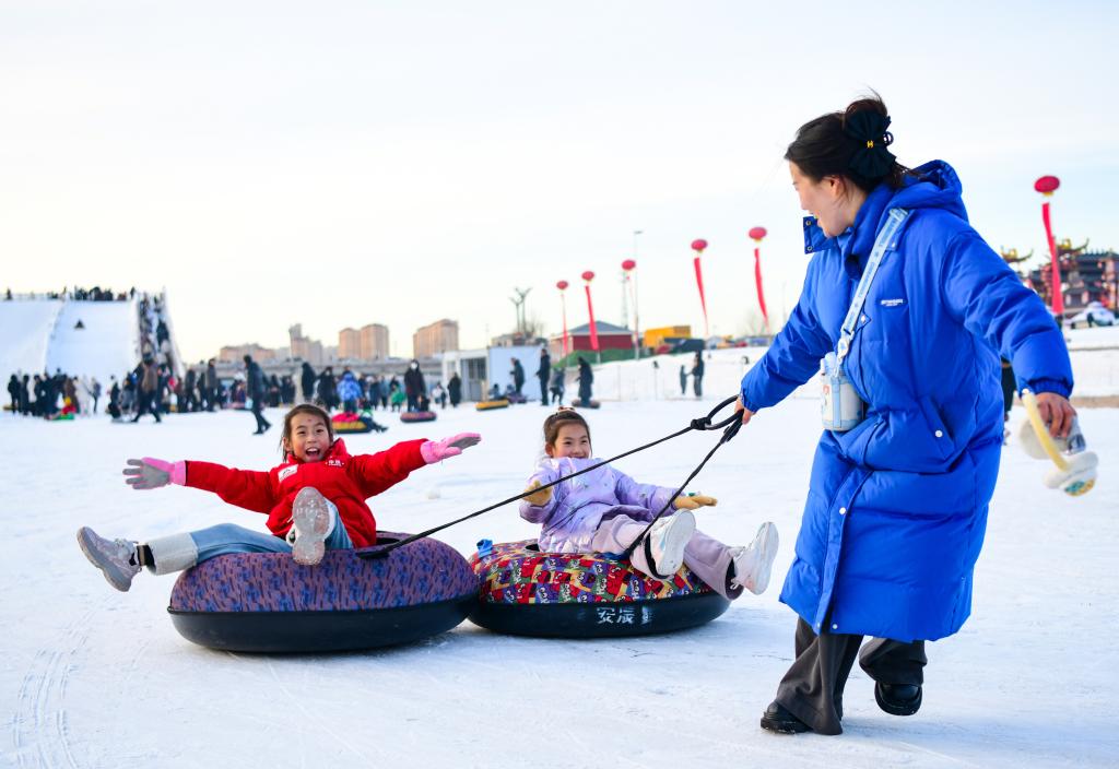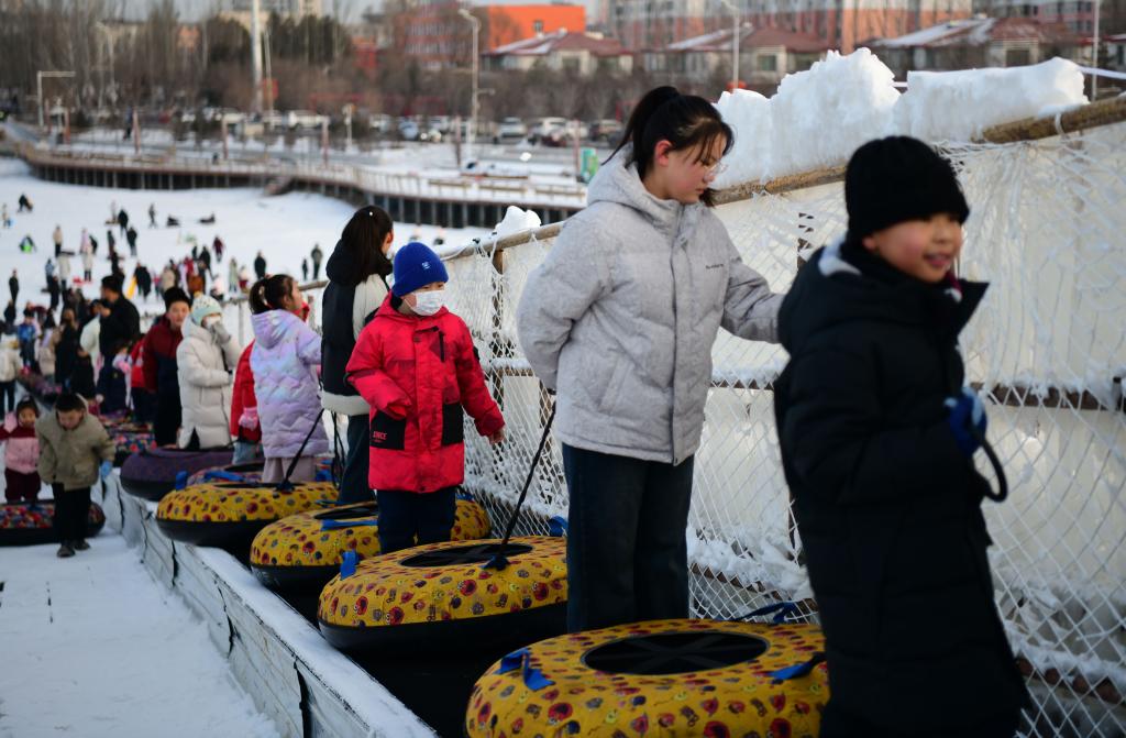 2025年12月31日,市民在冰雪主题乐园玩雪圈。(康文魁 摄)