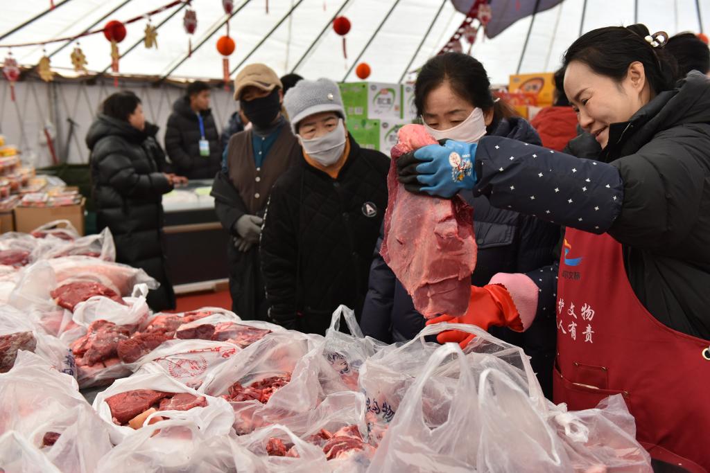 2025年12月31日,金融单位在美稷·长河里夜未央不夜城向市民游客发放礼品。(康文魁 摄)
