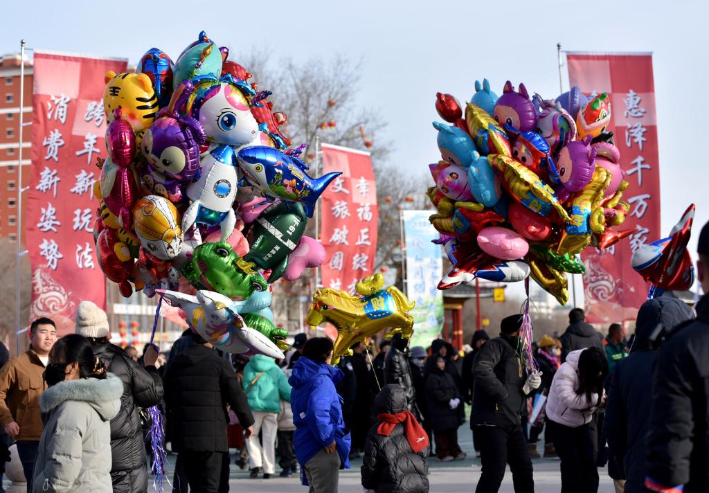 2025年12月31日,市民游客在美稷·长河里夜未央不夜城参与有奖游戏。(康文魁 摄)