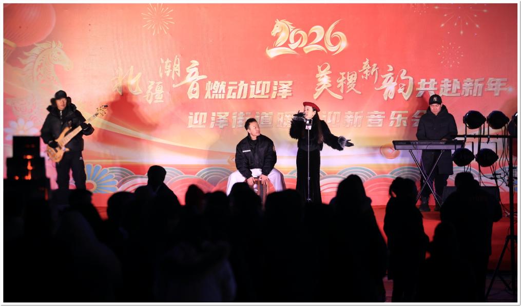 2025年12月31日,准格尔旗迎泽街道暖冬迎新音乐会在湾Night街区举行。(李峰 摄)