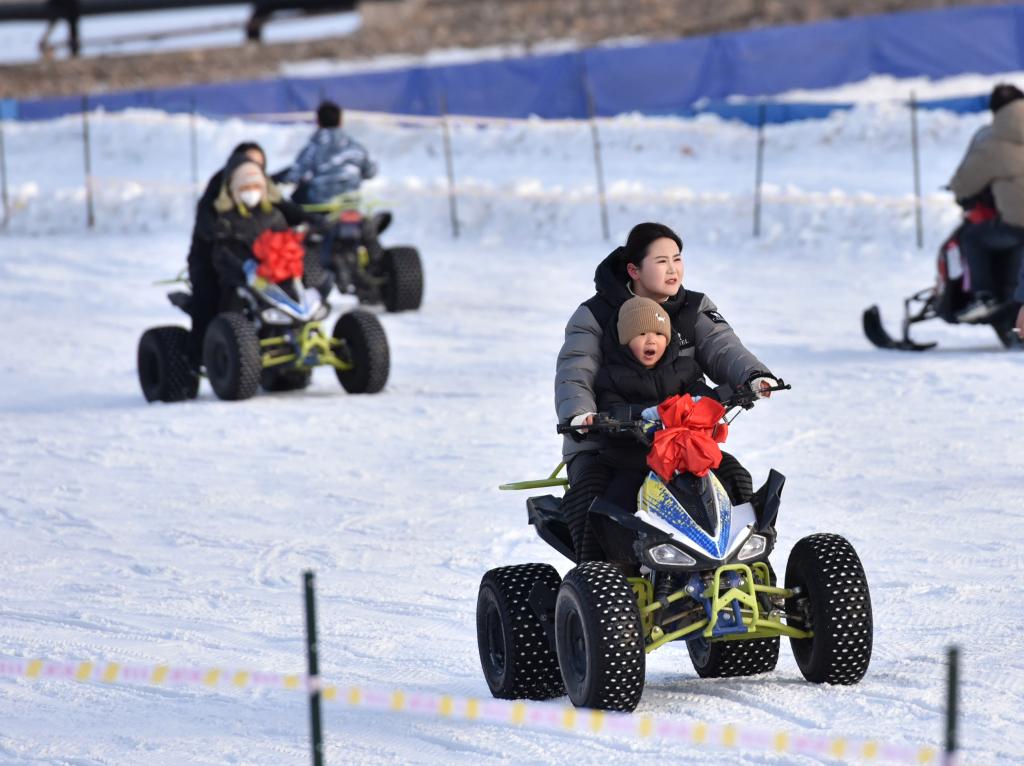 2025年12月31日,市民游客在冰雪主题乐园骑雪地摩托。(吴潇莹 摄)