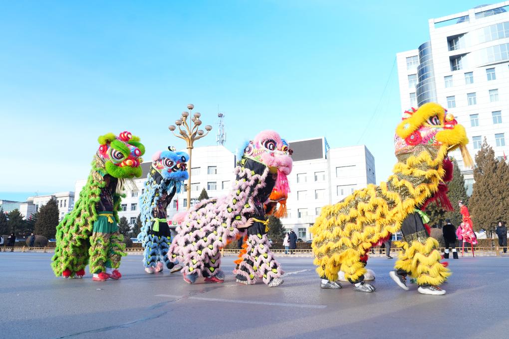 2025年12月31日,巡游队伍在准格尔广场表演舞狮。(曹文进_摄)