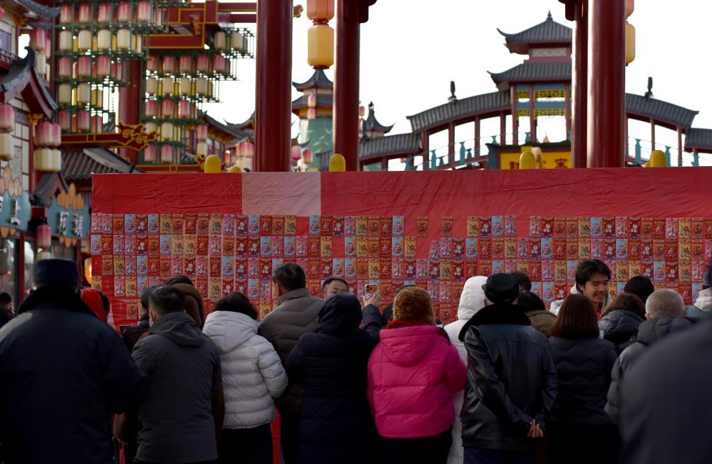 12月31日,市民游客在美稷·长河里夜未央不夜城参与有奖游戏。(康文魁 摄)