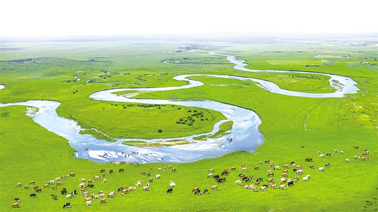 苍茫天地间,额尔古纳河蜿蜒如弓,蓄着千年的气势;呼伦贝尔大草原铺展似卷,迎着时代的劲风。