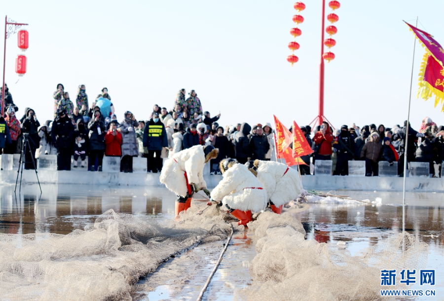 开幕现场,冬捕队伍展示了传统古法捕鱼技艺,象征吉祥与好运的“头鱼”经过激烈竞拍,以88.88万元人民币成交。活动期间,每周六、日特别设置“冬捕体验日”,游客可预约体验冰海渔猎。