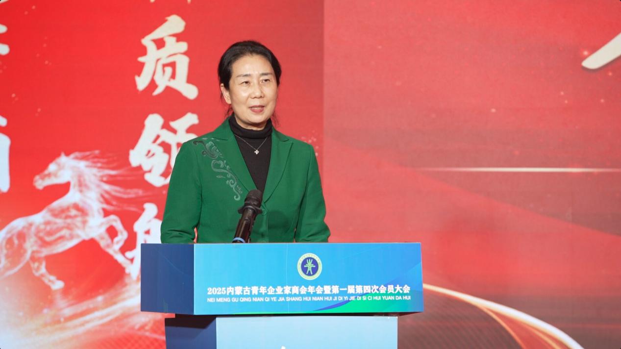 全国工商联青委会委员、内蒙古青年企业家商会会长、内蒙古丛源商贸有限公司董事长丛莉惠代表内蒙古青年企业家商会致欢迎辞,向长期以来关心支持我们的各级党委政府、自治区工商联,所有会员企业以及社会各界朋友,致以最衷心的感谢和最诚挚的新年祝福!丛莉惠表示,2025年是内蒙古青年企业家商会凝心聚力、实干笃行的一年。我们始终紧跟时代步伐,紧扣发展脉搏,在交流合作、红色引领、社会责任、服务会员四大维度交出了亮眼答卷。2026年是"十五五"规划开局之年,也是内蒙古高质量发展的关键之年。自治区党委提出的"1571"工作部署,为我们指明了前进方向。站在新的历史起点,商会将紧扣自治区战略部署,聚焦"五大战略定位"和七项重点工作,重点推进以下三大行动:一是实施青商赋能行动,助力产业升级,围绕特色优势领域和新兴赛道,组织会员参与重大科技项目对接,搭建产学研合作平台;二是深化内外联动行动,拓展发展空间。对内加强与各盟市商会、行业协会的协同合作,对外抢抓向北开放桥头堡建设机遇,组织"青商出海"系列活动,对接国内外优质资源,推动会员企业融入全国统一大市场,在更大舞台上展现内蒙古青商风采。三是推进责任担当行动,彰显青商价值,开展公益捐赠、助学帮扶等活动,深化"联合共建助力乡村振兴"行动;加强青年企业家思想引领,举办红色研学、政策宣讲等活动,引导会员企业在铸牢中华民族共同体意识、建设美丽中国先行区中主动作为,把企业发展融入自治区高质量发展大局。