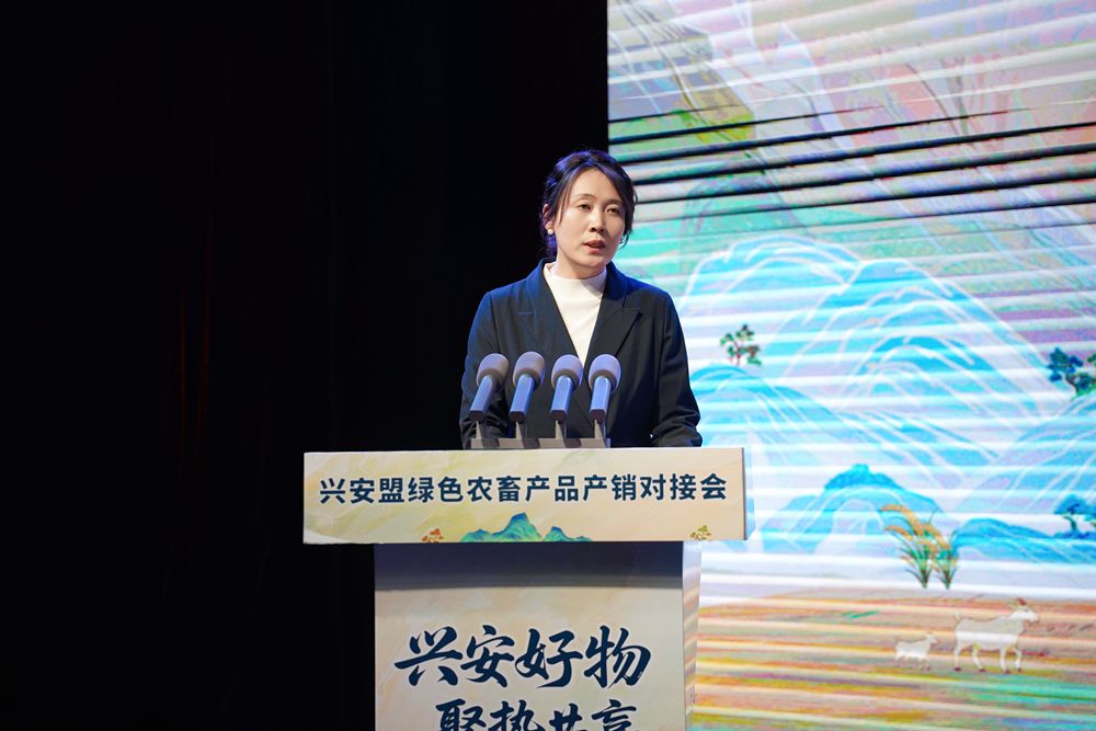1月18日,新华网内蒙古分公司总经理史叶在兴安盟绿色农畜产品产销对接会上致辞。