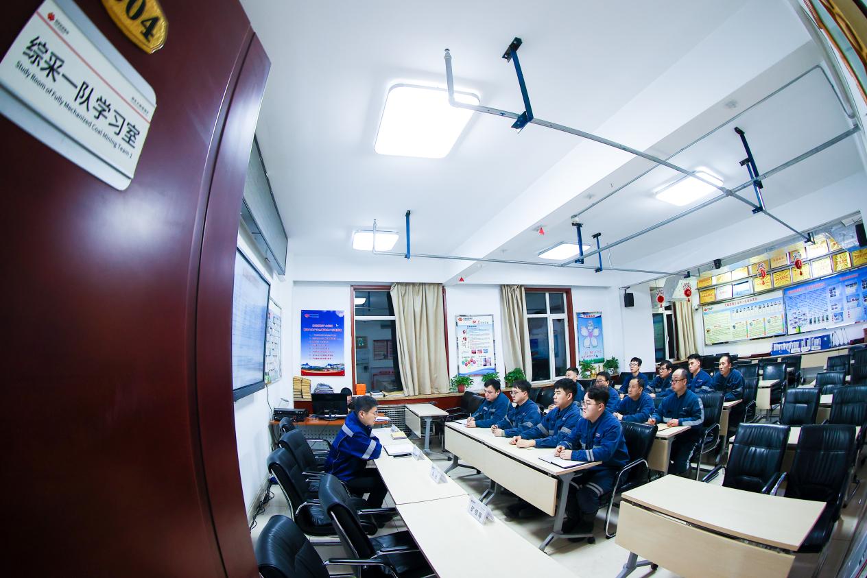 子时(23:00-1:00),今明两天的交汇点。这个时间段正是综采队夜班班前会和入井的时间。班前会上,大柳塔煤矿综采一队带班队长史先影叮嘱当班注意事项,把好安全“第一关”。