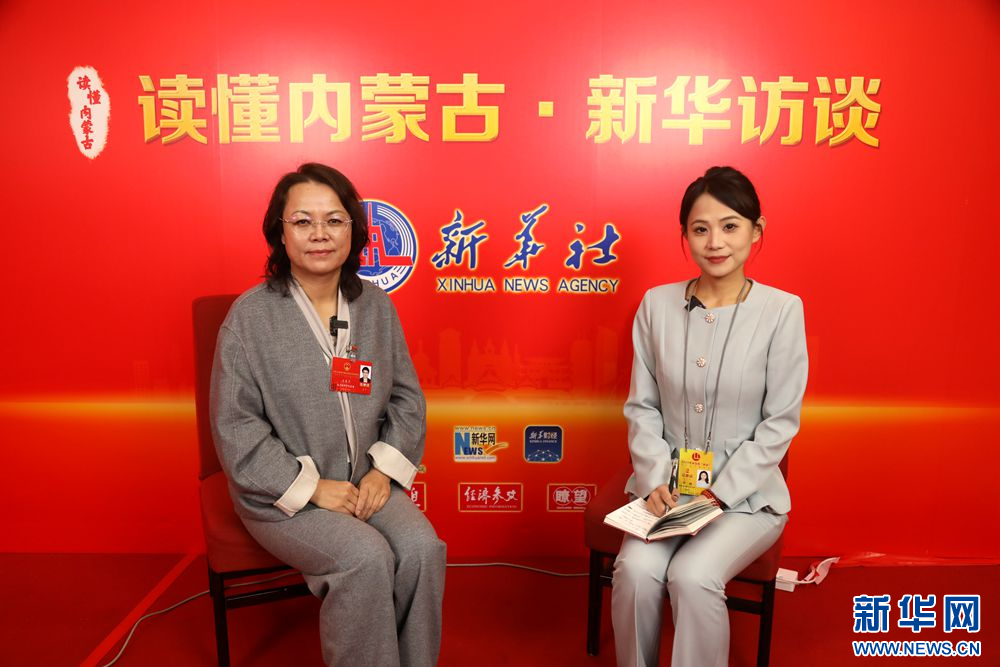 内蒙古自治区人大代表,内蒙古绿康源生态农业有限公司创始人王美兰(左)接受新华网专访。新华网发