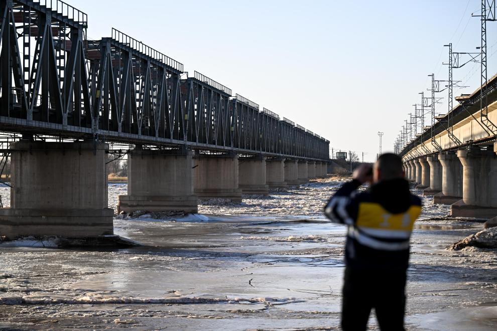 包兰铁路三盛公黄河铁路特大桥与包银高铁磴口黄河特大桥是中国铁路呼和浩特局集团有限公司乌海工务段管内的铁路桥。春运期间,为保障列车安全平稳运行,乌海工务段的桥隧工人加强了这两座大桥的巡检工作。