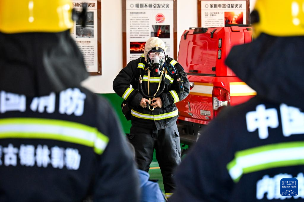3月19日,西乌珠穆沁旗消防救援大队消防指战员在检查消防装备。