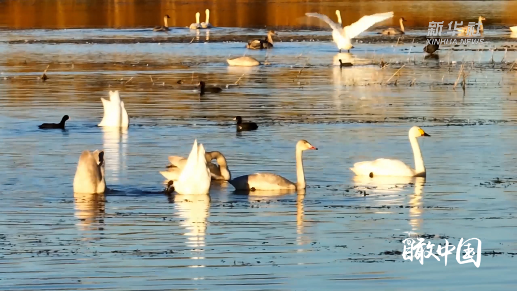 万鸟振翅划破长空,成群的候鸟如约而至,在水天之间盘旋起舞,为这片土地奏响春天的序曲。
