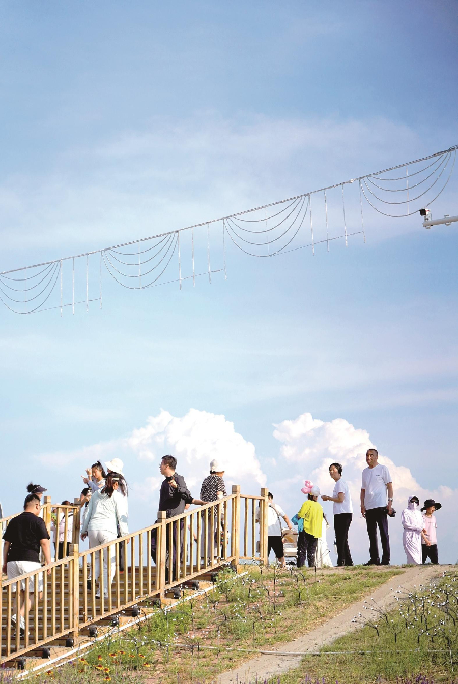蓝天下市民开心游玩。