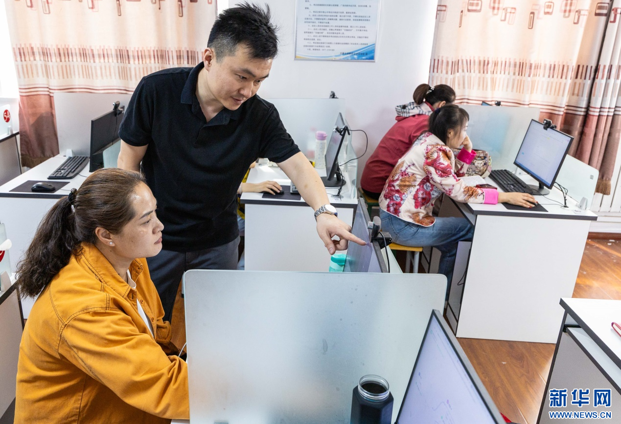 4月13日,呼和浩特市玉泉区妇联“村播妇女小组”学员在电子商务培训班上学习短视频制作。新华网发(丁根厚 摄)