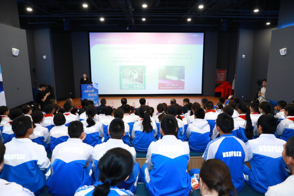 “希望大家从小树立远大志向、锤炼过硬本领,助力我国航天事业飞得更高、更远!”航天科工六院党群工作部一级主管李宇虹以“叩问苍穹”为主题,为在场中小学生带来一堂生动的航天精神思政课,勉励青少年追逐航天梦想。