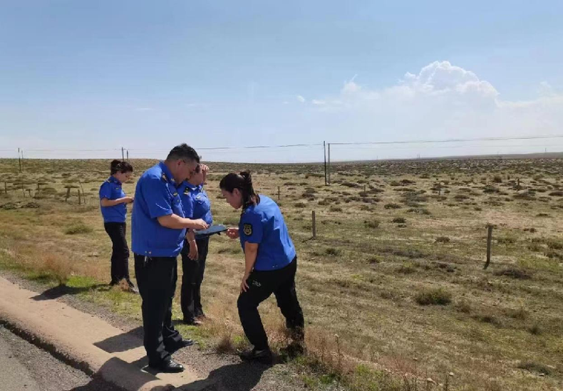 鄂托克旗林业和草原局工作人员在蒙西镇巴音温都尔嘎查巡察检查禁休牧工作情况。