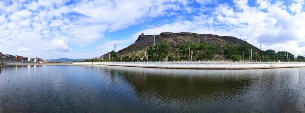 站在山顶向南鸟瞰,大黑河由东向西日夜奔腾,款款流淌;铁路线横贯东西,绵延百里;条条公路宛如丝带,“飘”向远方,各种车辆往来穿梭,好一派交通发达、经济繁荣、社会安康景象。向北眺望,万亩滩尽收眼底,片片村庄错落有致、红砖蓝瓦间绿荫围合,炊烟四起;乡间小路纵横交错,麦田谷地五彩斑斓,时刻勾画着一片富庶景象。