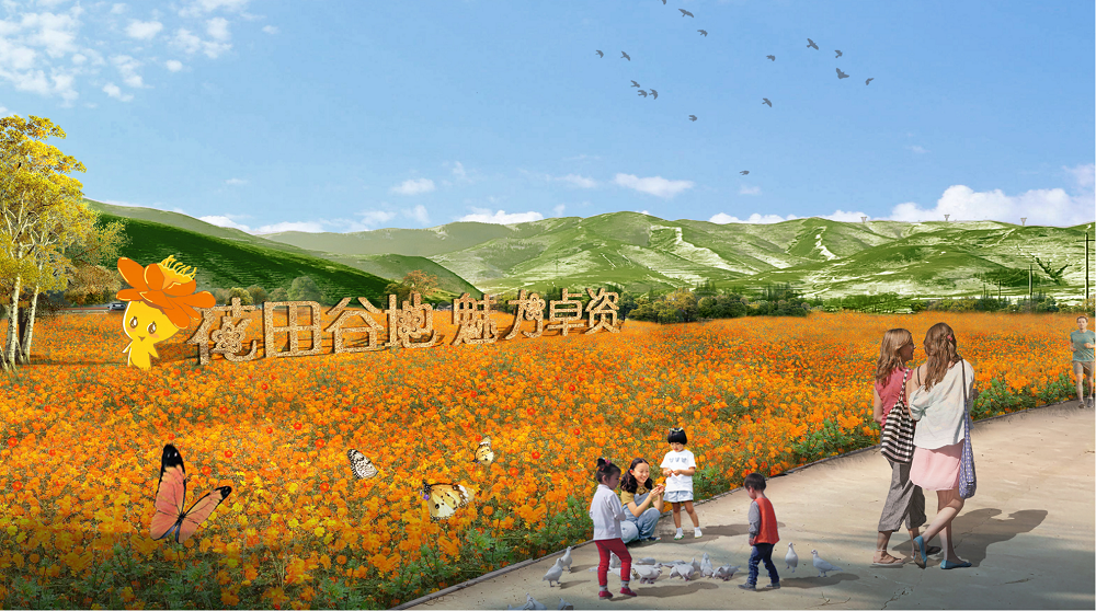 “百里画廊”依托独特的地理位置和生态优势,着重体现卓资富有特色的山、水、林、田自然景观,以“阴山环抱、漫步花园”为主题,种植天人菊、百日草等近百种一年生和多年生植物花卉以及蜜源植物、经济作物。整个景区内含梯田艺术、大地景观和康养花园等,涉及亲子游、研学、摄影、生态产品、花卉产业等多元旅游项目。
