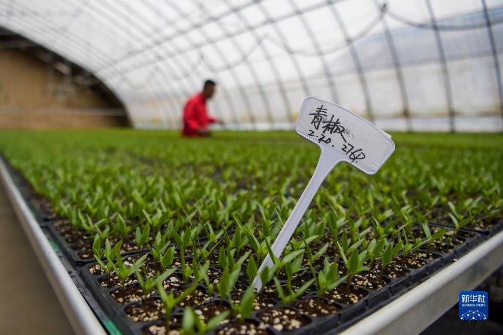 春日时节,在位于内蒙古自治区呼和浩特市赛罕区的蒙苗农业蔬菜育苗基地,工人们播种蔬菜种子,管护蔬菜种苗,一派繁忙的劳作景象。