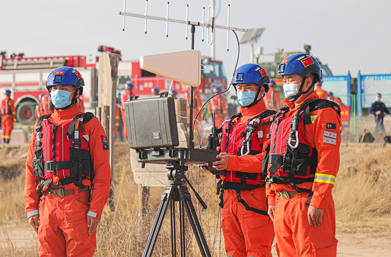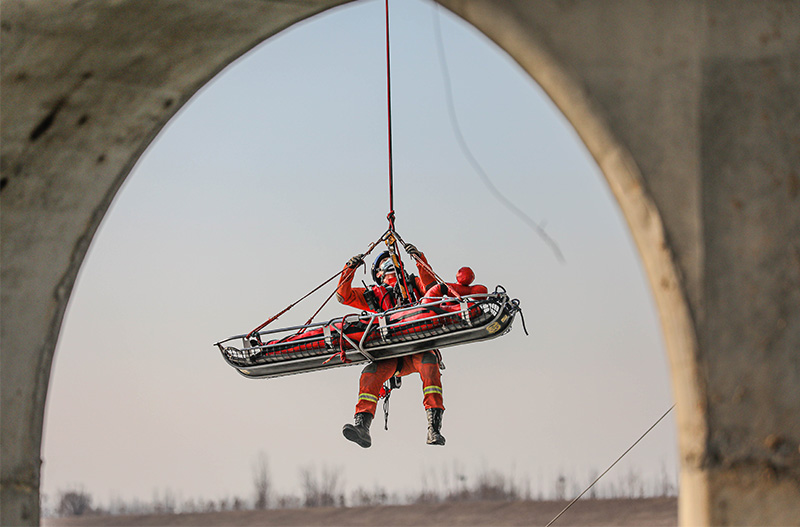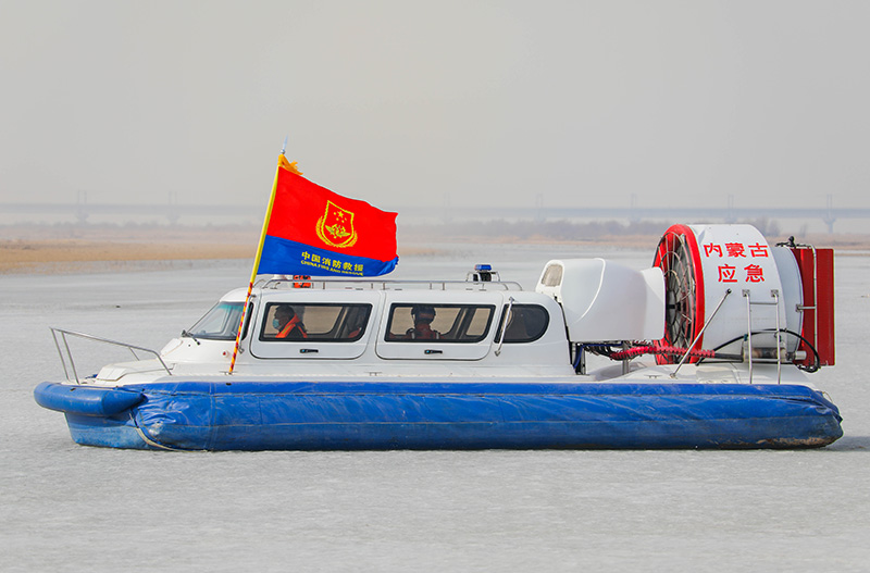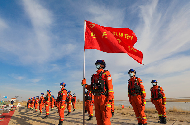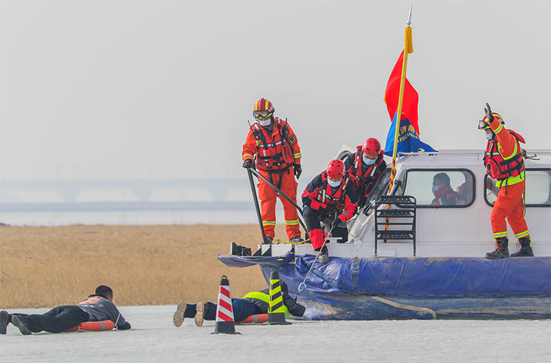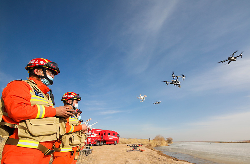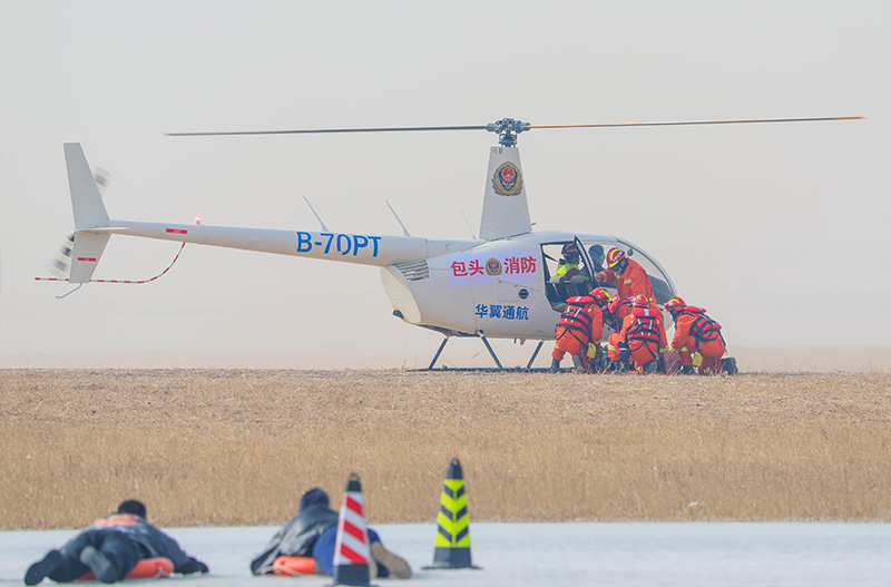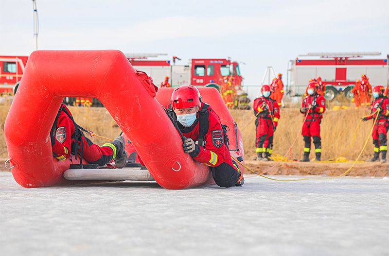 近日,内蒙古自治区防汛抗旱指挥部在包头市开展黄河防凌及冰域抢险救援实战演练。(肖栋)