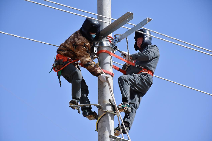 在益元兴五队,工作人员正繁忙有序地进行配网线路改造,“一条线路变成两条,旧线换新线,而且是安全等级较高的绝缘线,这样不仅增加乡村供电线路负荷量,也为清洁能源建设提质增效,持续推进‘煤改电’工程奠定了安全基础。”据郭亚轩介绍,工程改造共涉及三岔口乡周边7个村子,高压线路长35公里。