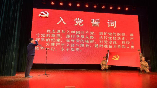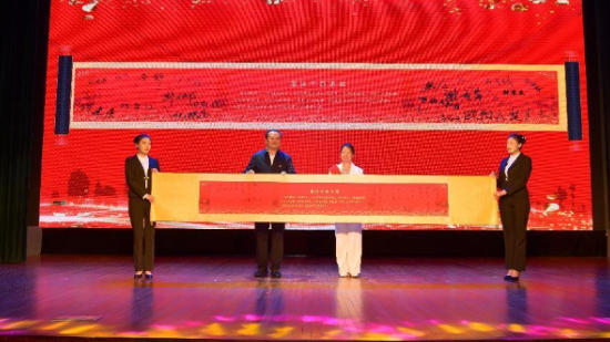 荣誉退休干部代表向组织赠送承诺卷轴。