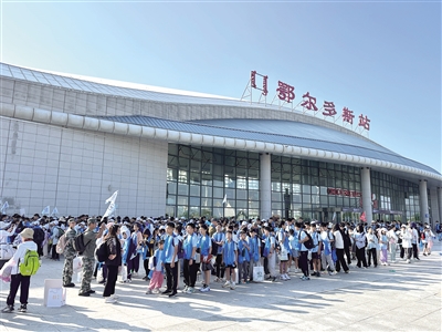 8月4日,由鄂尔多斯星光国际旅行社与北京青葱汇研学国际旅行社共同策划的广东“海丝阳江号”研学专列抵达鄂尔多斯站,860余名师生乘坐这趟专列,从南海之滨来到魅力暖城,穿越多个省区,行程几千公里,开启鄂尔多斯研学之旅。这是今年鄂尔多斯迎来的首列研学专列。