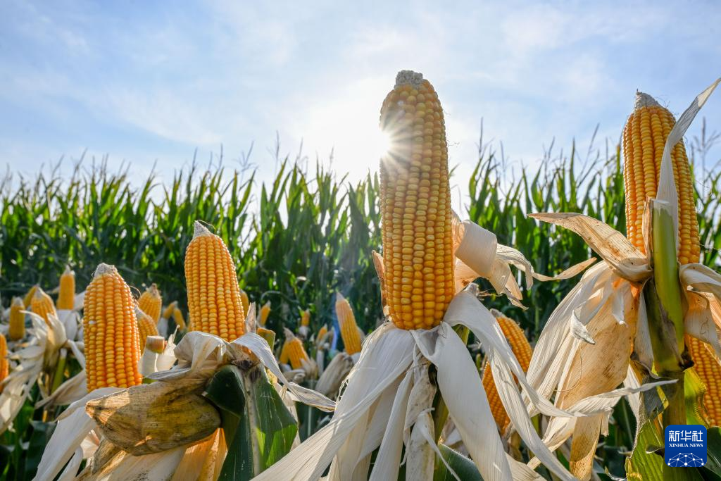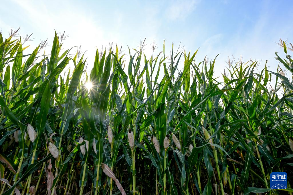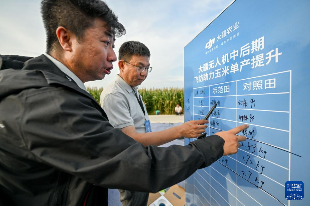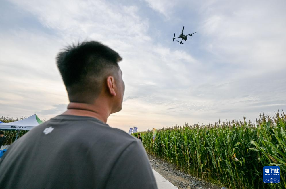 9月24日拍摄的内蒙古通辽市科尔沁区使用无人机飞防技术的玉米示范田。