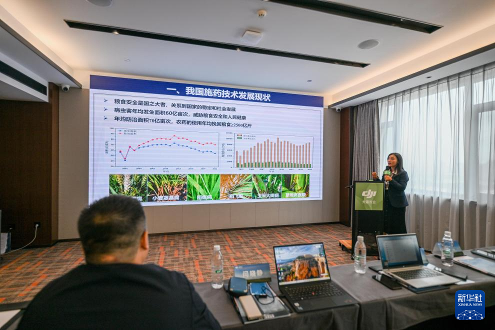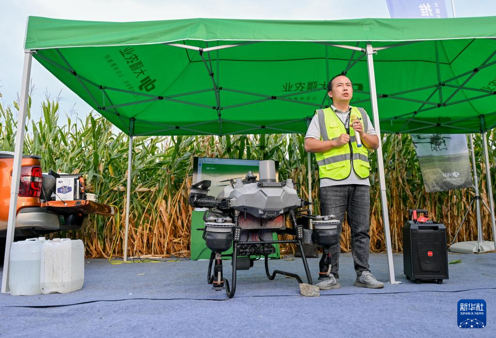 9月24日,中国农业科学院植物保护研究所技术人员在讲解玉米病虫害飞防施药技术。