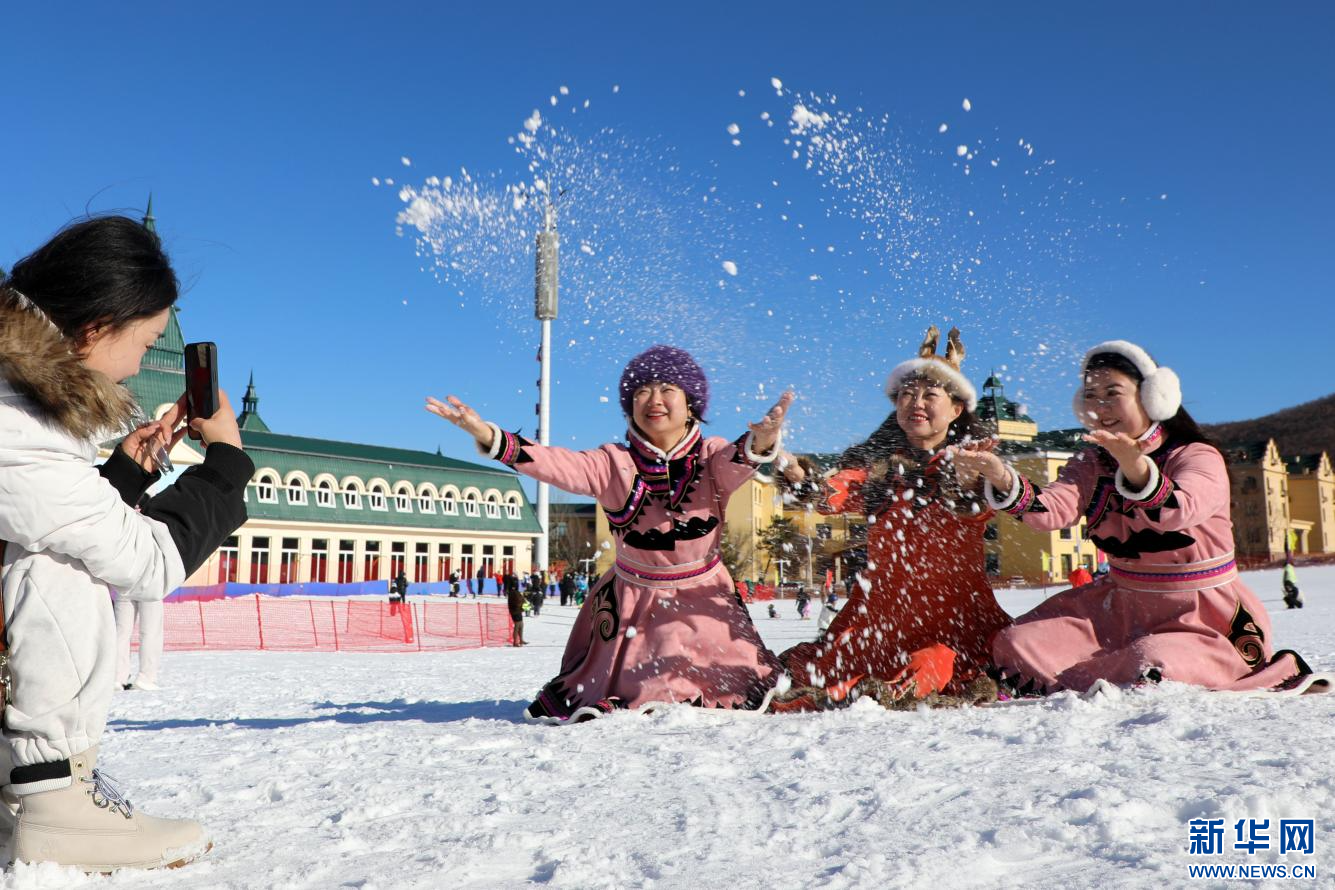 11月10日,乌兰牧骑演员在扎兰屯冰雪嘉年华活动现场进行文艺表演。新华网发(韩颖群 摄)
