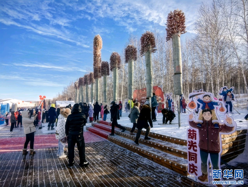 12月7日,牙克石市凤凰山景区免费向游客发放糖葫芦。新华网 郝芳芳 摄