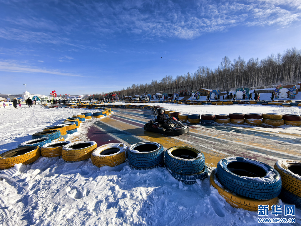 12月7日,游客在牙克石市凤凰山景区体验雪地卡丁车。新华网 郝芳芳 摄