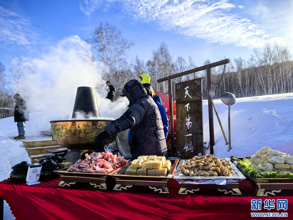 12月7日,游客在牙克石市凤凰山景区品鉴“呼伦贝尔涮”。新华网 郝芳芳 摄