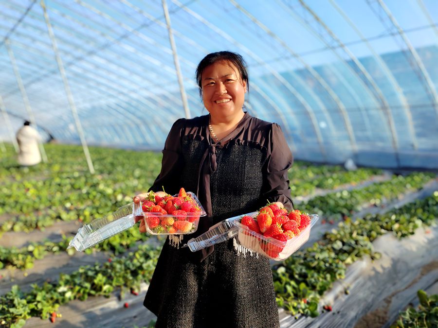 林西县大营子乡禾旺设施农业产业园的草莓获丰收。