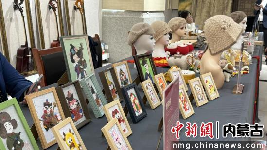 非遗展区陈列着蒙古族皮雕、掐丝珐琅摆件等传统手工艺品。最吸引小朋友的当属哪吒系列作品和十二生肖摆件。如果不是志愿者介绍,很难想象这些作品均出自残疾艺人之手。非遗不仅是技艺的传承,更是生命韧性的见证。