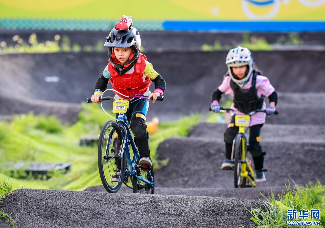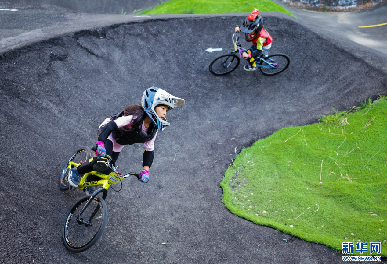 盛夏时节,内蒙古自治区呼和浩特市玉泉区劢立体育文化产业园(原制锁厂)泵道骑行区内,佩戴全套护具的“小骑士”们在波浪般上下起伏的泵道间穿梭腾跃,尽享泵道骑行的乐趣。