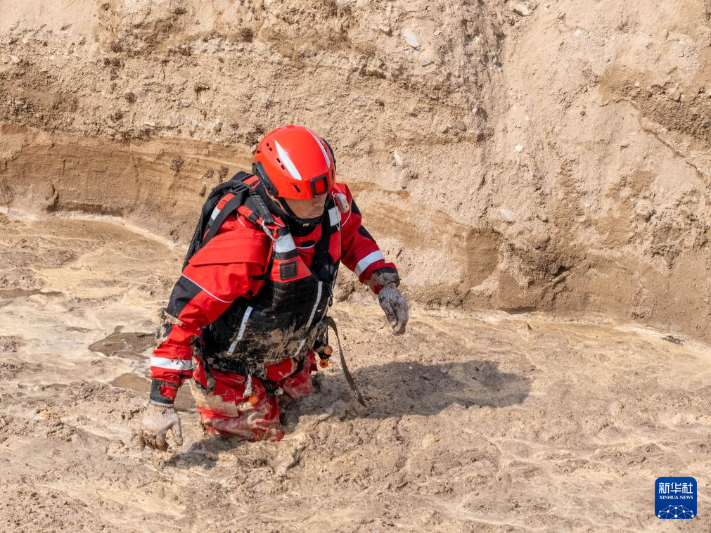 8月18日,在内蒙古巴彦淖尔市乌拉特后旗乌盖苏木,消防队员进行搜救作业。