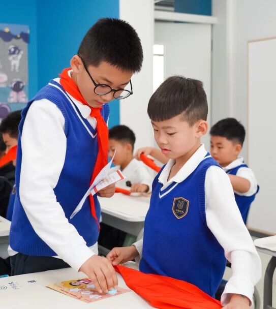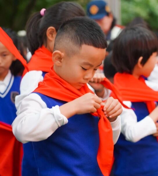 这是一次红色传承与研学实践的深度融合,新队员在生生不息的绿色中荣耀加冕,红领巾在绿意中迎风飘扬。